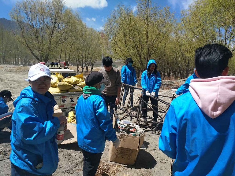 山南市團(tuán)委組織青年志愿者前往雅礱藏布江河畔清理河床垃圾——國(guó)策環(huán)保山南分公司協(xié)助垃圾清運(yùn)并處理。