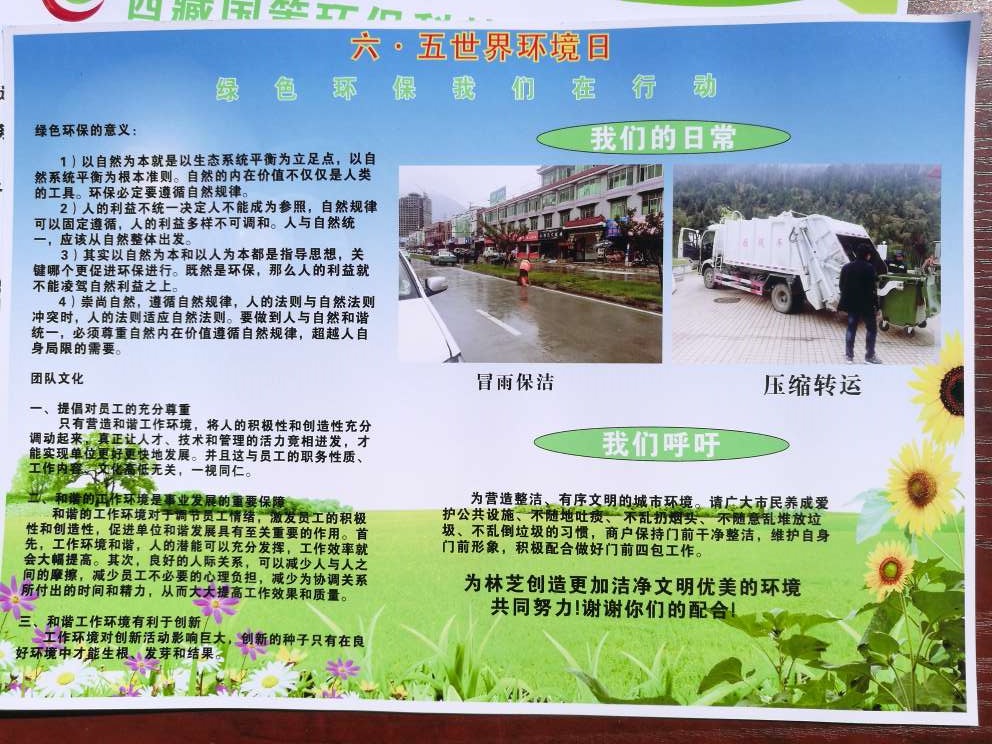2017年6月5日,在林芝市巴宜區(qū)廈門廣場(chǎng)開展《六五世界環(huán)境日》環(huán)保宣傳活動(dòng),——“青山綠水便是金山銀山”,呼吁廣大市民、游客等廣大群眾參與保護(hù)雪域高原最后的碧水藍(lán)天;此次活動(dòng)由林芝市環(huán)保局牽頭組織舉辦,參與活動(dòng)單位:林芝市市政管理局、西藏國策環(huán)??萍脊煞萦邢薰玖种シ止?、林芝市農(nóng)牧局、林芝市國土資源局、林芝市發(fā)改委、中國華能、巴宜區(qū)環(huán)保局、林芝市商務(wù)局、林芝市科技局、林芝市林業(yè)局等單位?;顒?dòng)現(xiàn)場(chǎng)也聚集市民、游客等參與環(huán)保宣傳和學(xué)習(xí)環(huán)保知識(shí)。