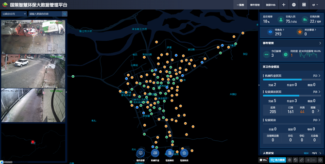 國策環(huán)保在投入機(jī)械化同時配套完善了智慧環(huán)保平臺建設(shè),以感知設(shè)備、智能終端等構(gòu)建的物聯(lián)感層與智慧環(huán)保平臺共同發(fā)揮了對環(huán)衛(wèi)各要素等進(jìn)行全程實(shí)時管控和作業(yè)優(yōu)化,國策各分級指揮中心實(shí)現(xiàn)了對工作人員的精準(zhǔn)調(diào)配,提高了工作效率。與此同時來自于甲方對質(zhì)量的監(jiān)管及公眾的投訴建議與國策智慧環(huán)保保持高效互動,更進(jìn)一步改善城市公共環(huán)境質(zhì)量。